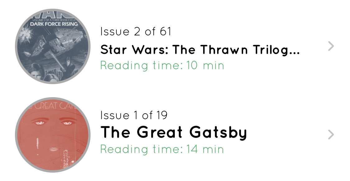 I've been reading a couple of my own books in Serial Reader this way. It's been especially helpful for reading a sometimes less-than-thrilling book for my day job on working remotely (hi, 2020) as well as some fiction. You can see below just started rereading the Star Wars Thrawn trilogy and The Great Gatsby. If you own some EPUB books and have had trouble getting through them, or want to read them a bit more slowly, reading them in small bits once a day is a great way to progress through a book and retain more info.
