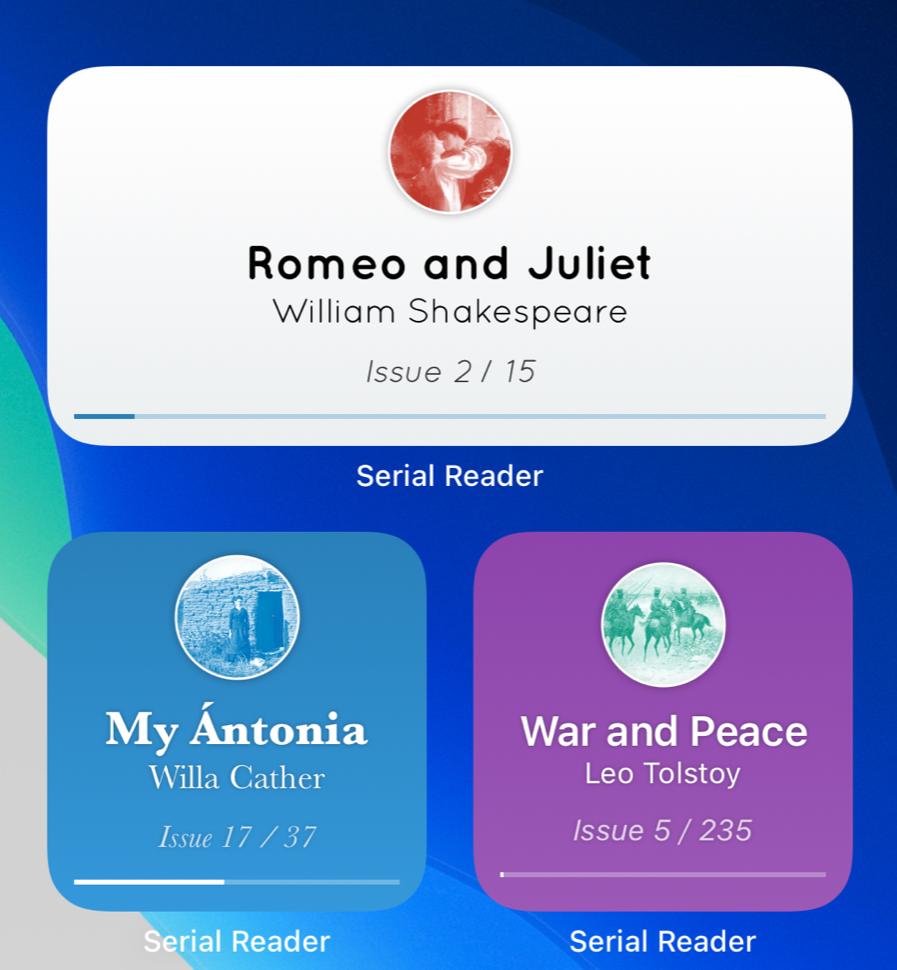 With the latest new version of Serial Reader released today you can now automatically serialize your own books, in addition to the over 750 classic books available in the app! Plus there are some extra new features for iOS folks, including homescreen widgets and custom reading schedules